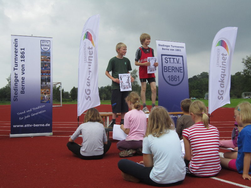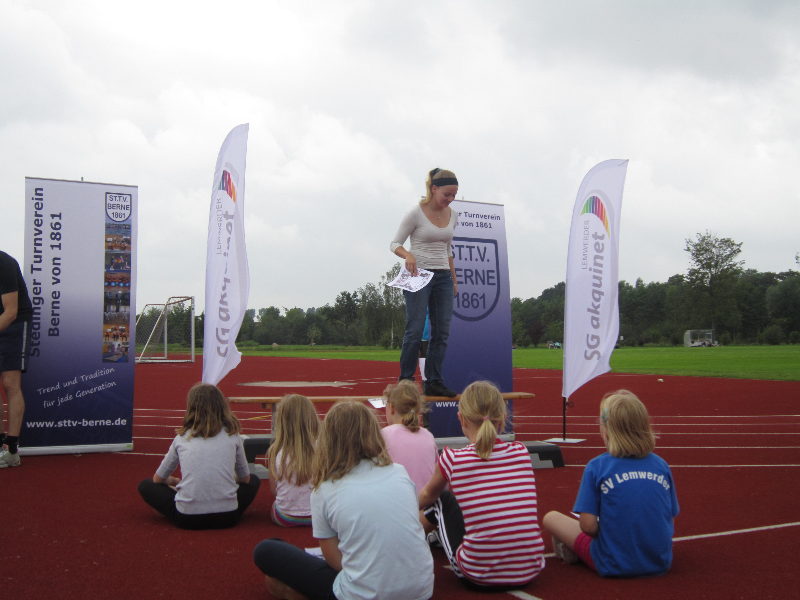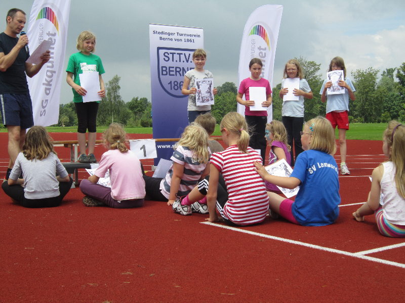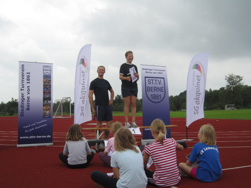 Das Sportfest führten wir in diesem Jahr in Zusammenarbeit mit dem Lemwerder TV und der SG aquinet in Lemwerder durch. Die Veranstaltung wurde gut besucht, sieben Vereine aus dem Umkreis nahmen teil. Absolviert wurden im Rahmen eines Dreikampfes die Disziplinen Weitsprung, Sprint und Schlagball bzw. Kugelstoßen.