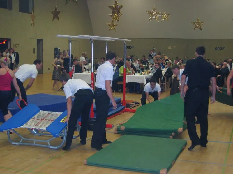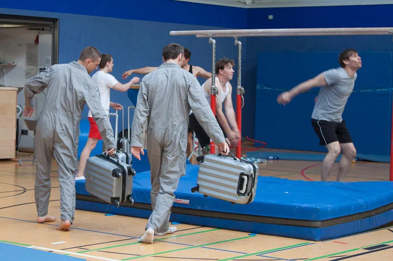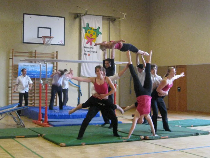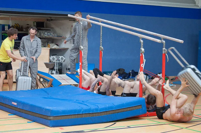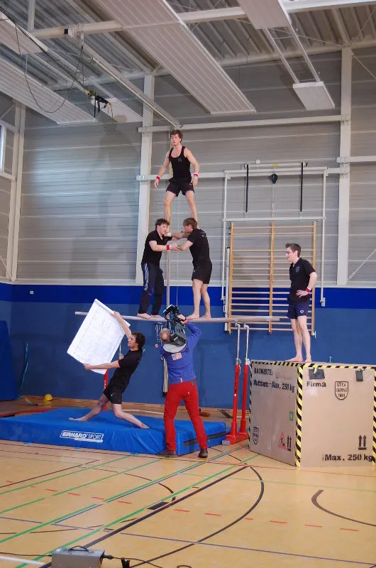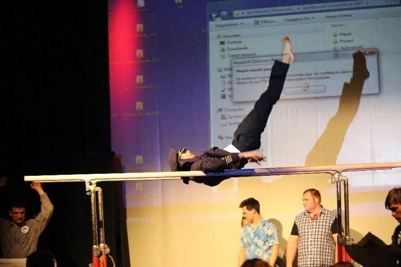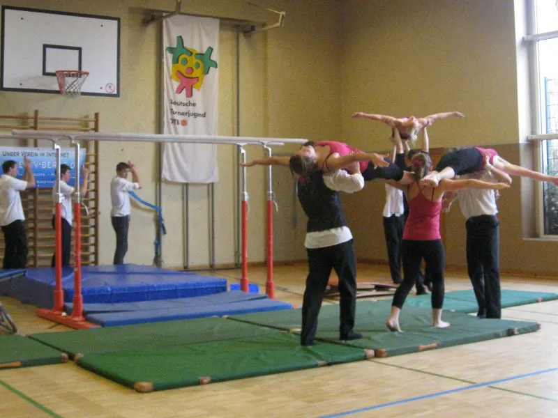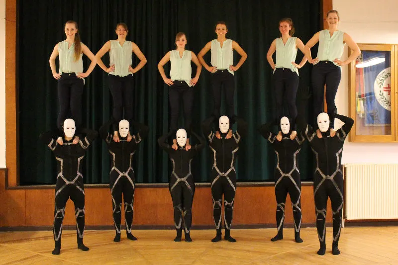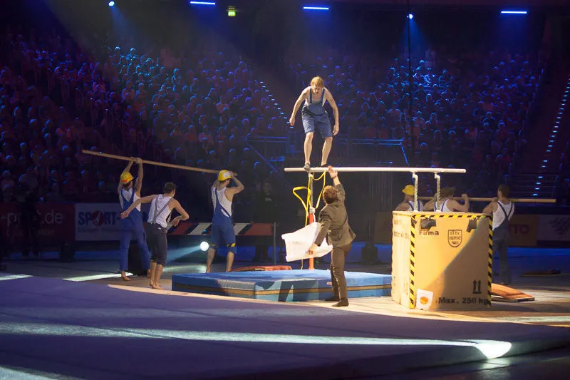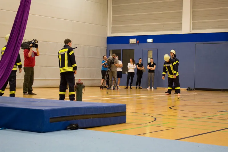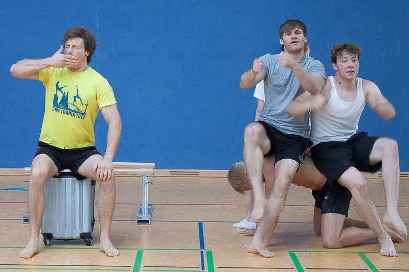 Hier werden klassische Übungen aus dem Bereich des Gerätturnens originell zu kleinen Vorführungen verpackt.