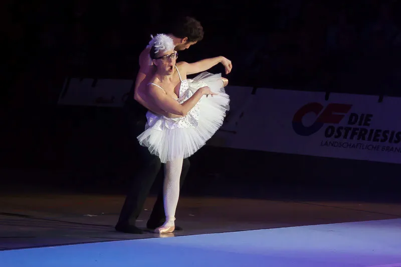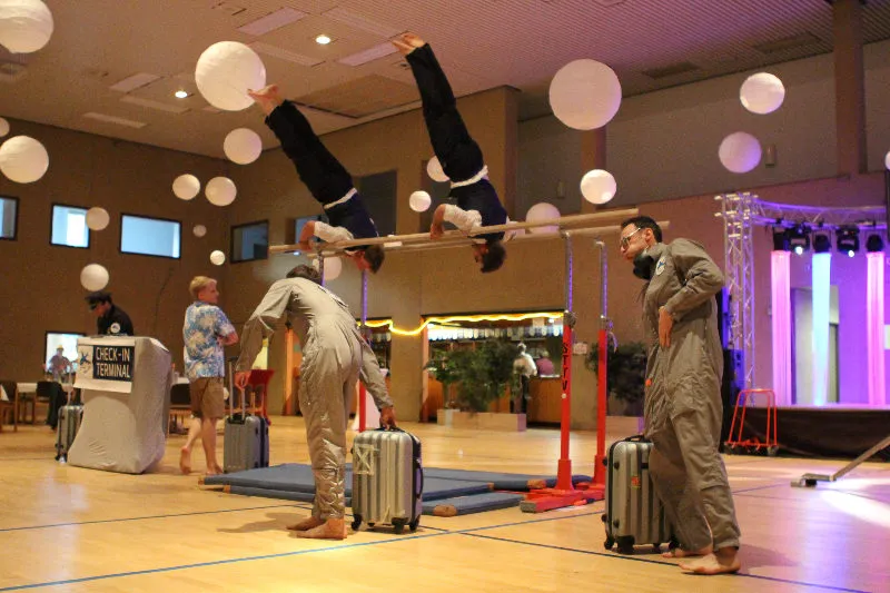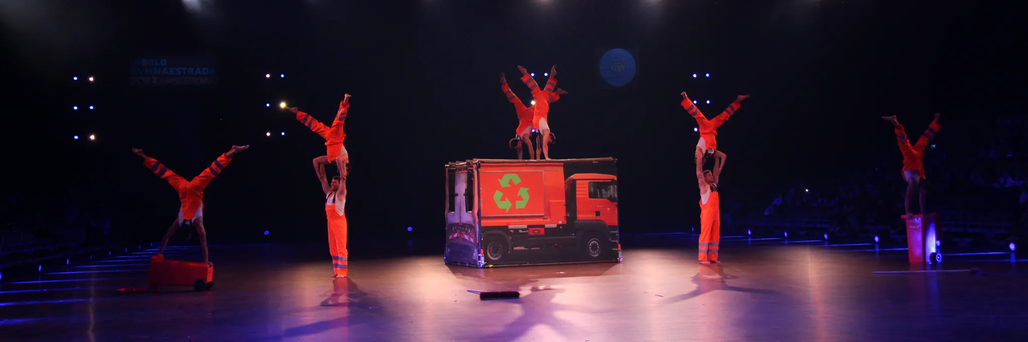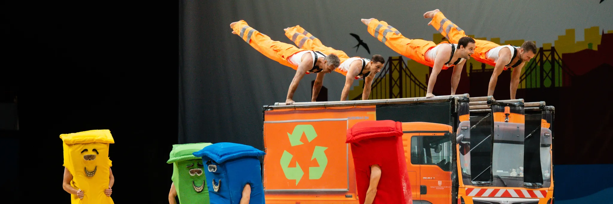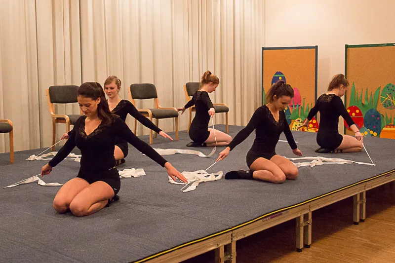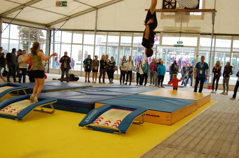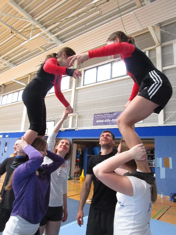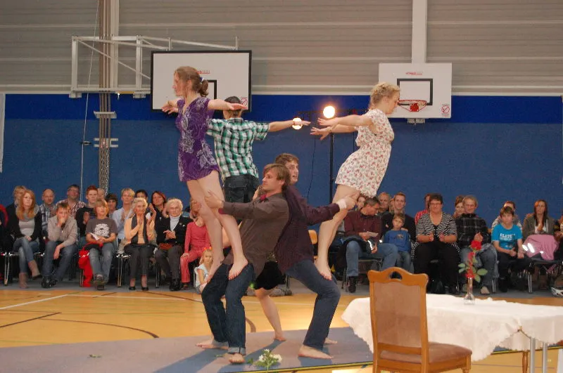 Hier werden klassische Übungen aus dem Bereich des Gerätturnens originell zu kleinen Vorführungen verpackt.