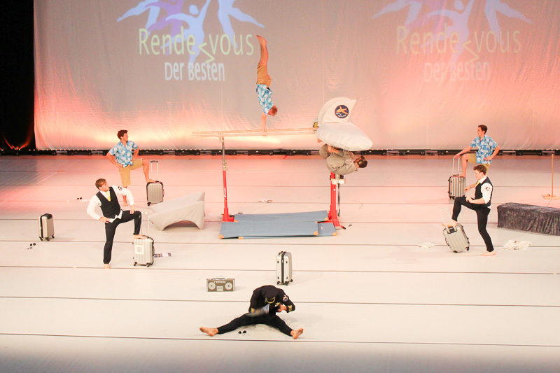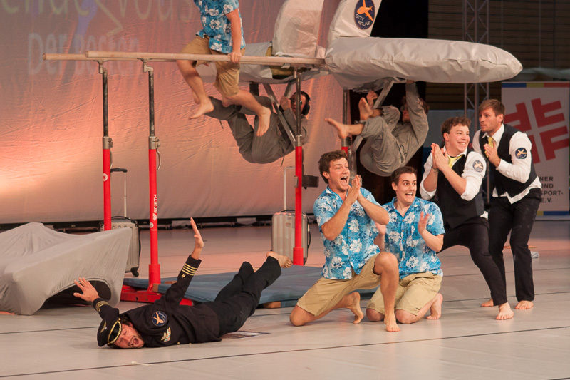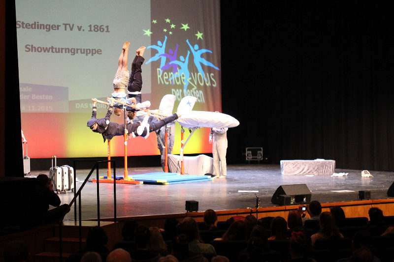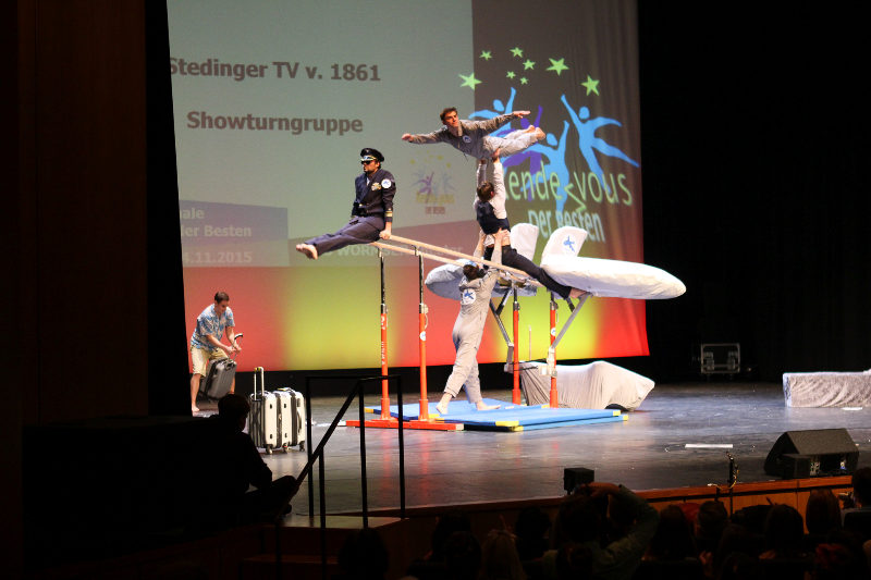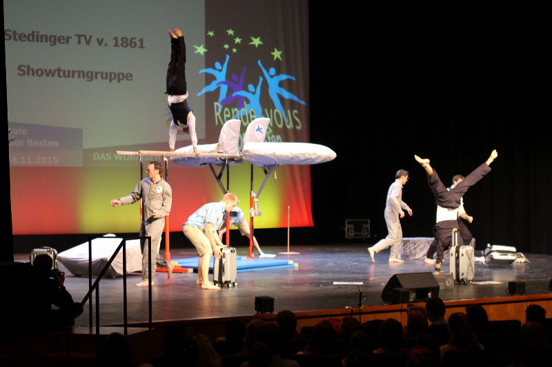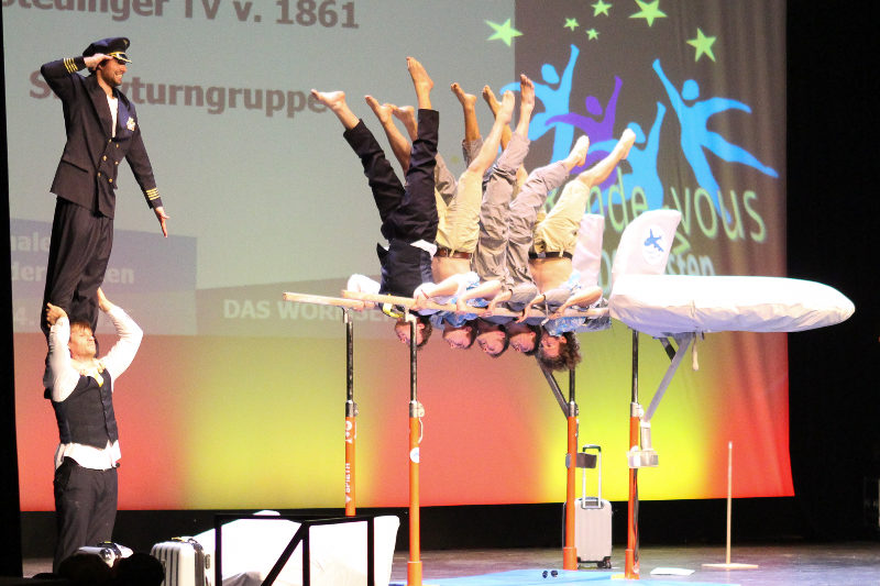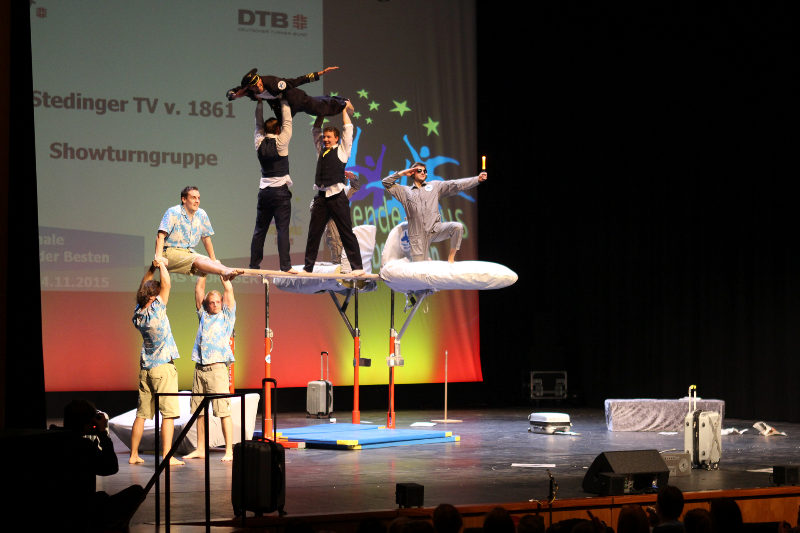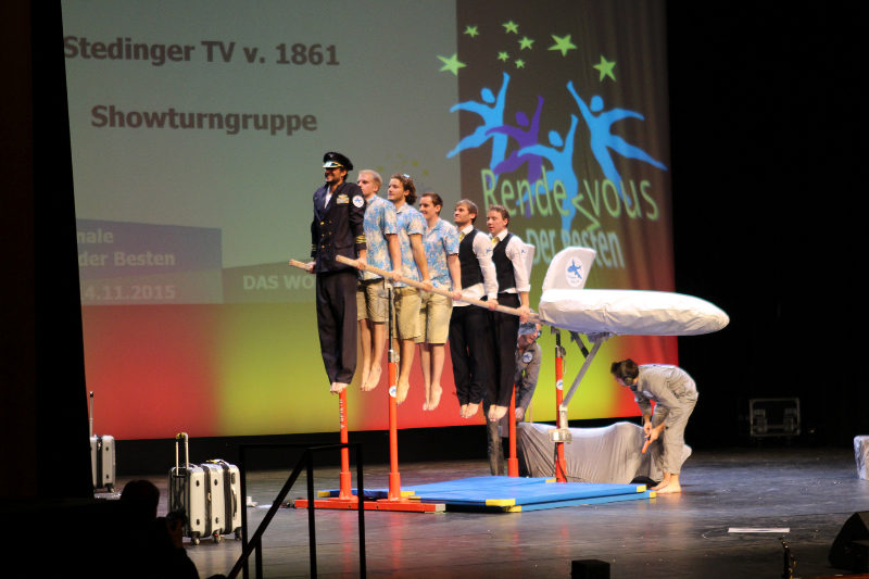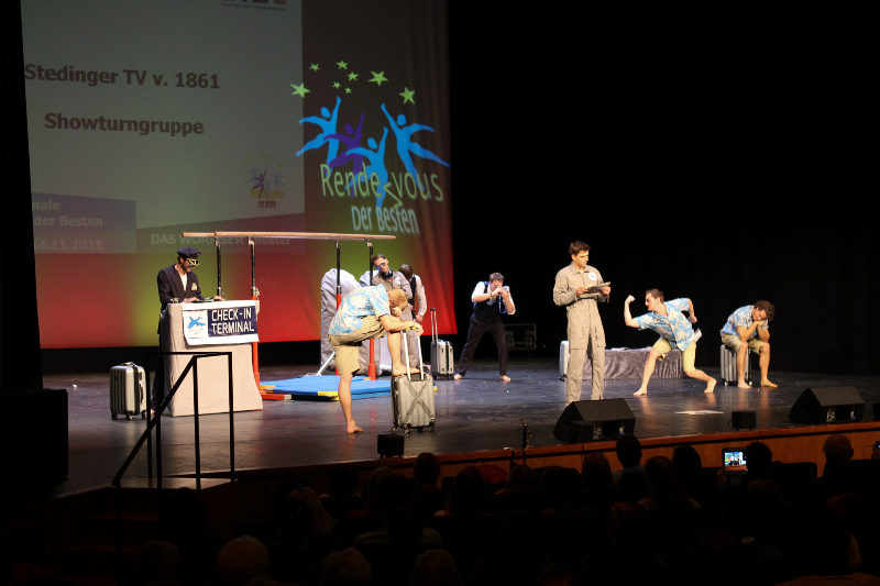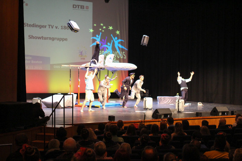 DTB-Showgruppe 2015! Die Showturngruppe des StTV-Berne erturnt sich im Wormser Theater mit ihrer Darbietung "StTV-Airline" das Prädikat HERVORRAGEND.