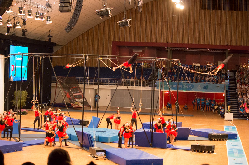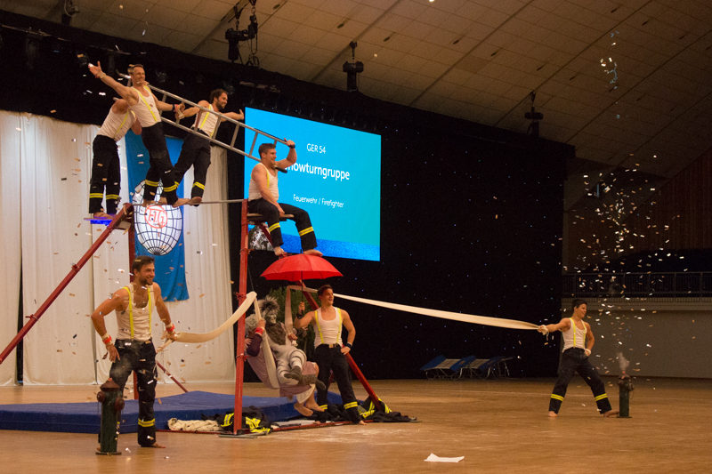 Unsere Showturngruppe ist zurück aus Norwegen von der World Gym for Life Challenge, der Showgruppen-Weltmeisterschaft. Mit ihrer starken und eindrucksvollen Reckshow erturnten sich die Männer eine Goldmedaille im contest "small groups on or with large apparatus". Damit gehört unsere Showturngruppe von nun an zu den besten der Welt.