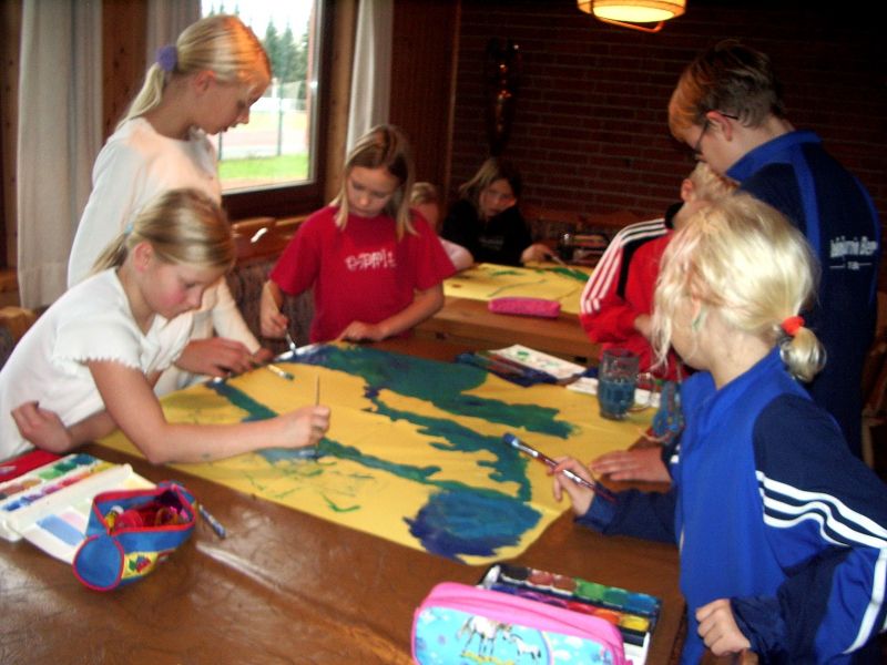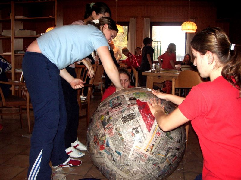 Aktive der Trampolingruppen trainieren unter der Leitung von Annika Ulbrich für das Kinderschauturnen und übernachten in der Turnhalle.
