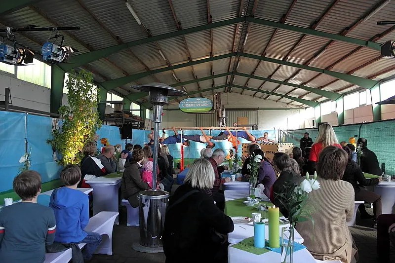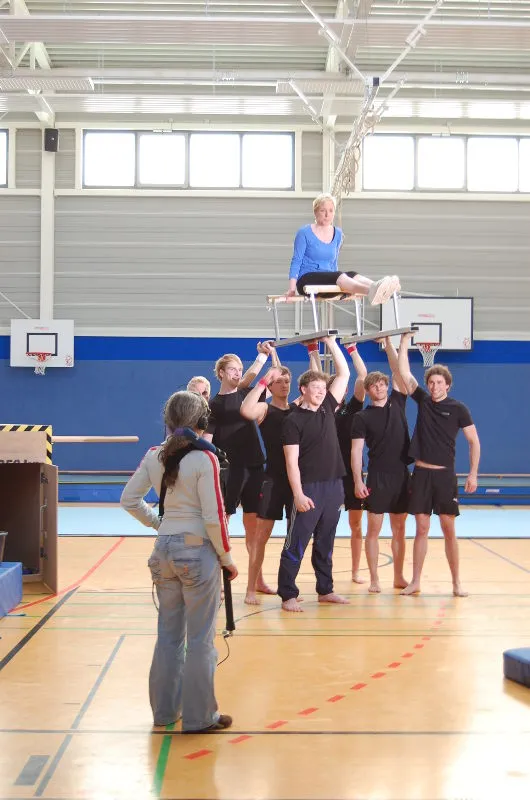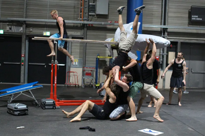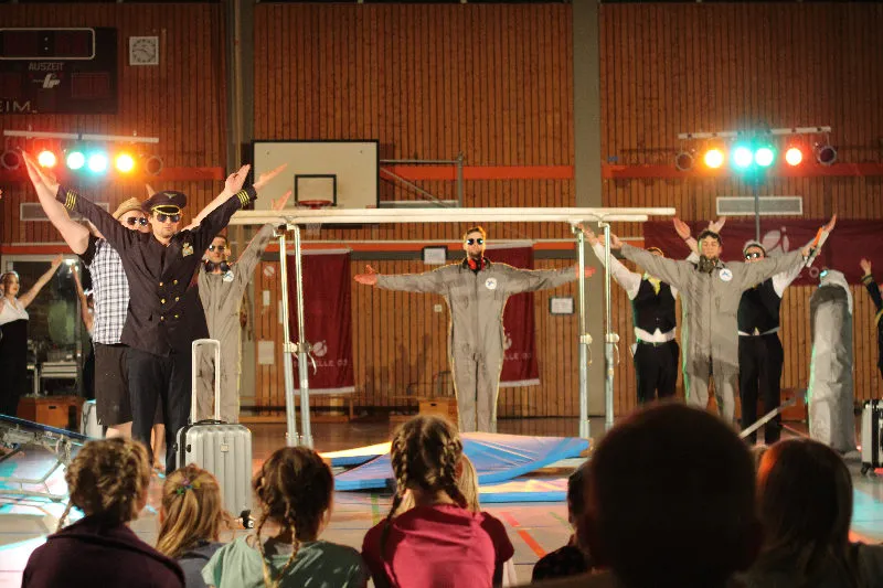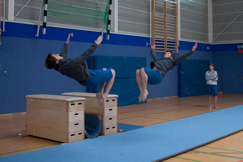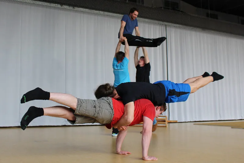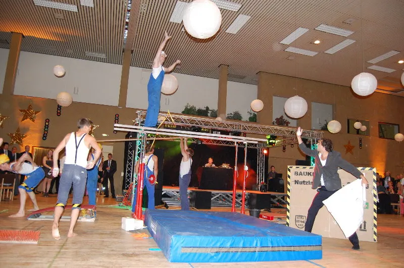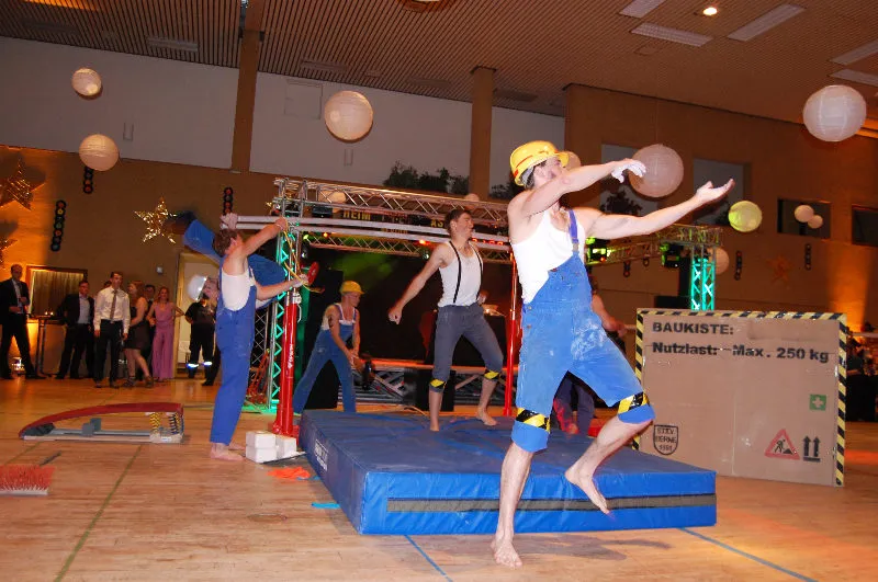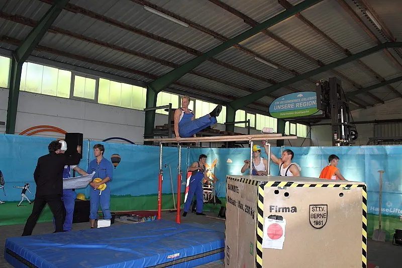 Hier werden klassische Übungen aus dem Bereich des Gerätturnens originell zu kleinen Vorführungen verpackt.