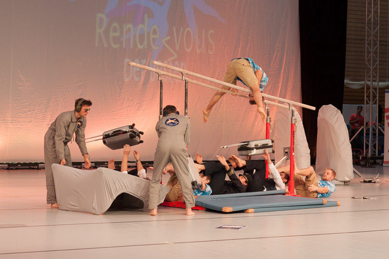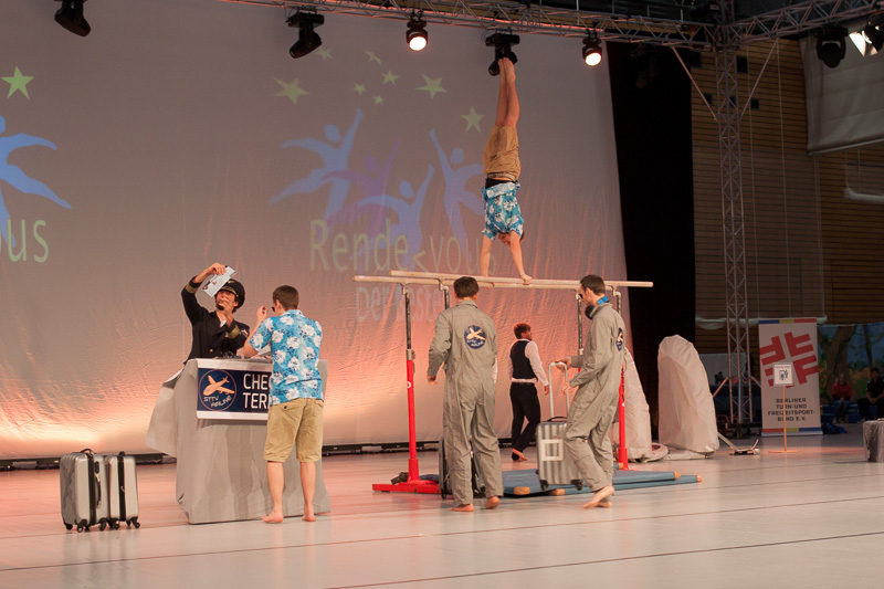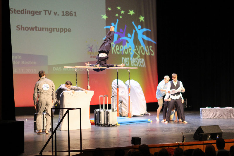 DTB-Showgruppe 2015! Die Showturngruppe des StTV-Berne erturnt sich im Wormser Theater mit ihrer Darbietung "StTV-Airline" das Prädikat HERVORRAGEND.