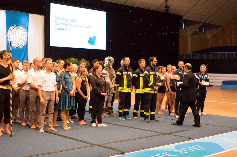 Unsere Showturngruppe ist zurück aus Norwegen von der World Gym for Life Challenge, der Showgruppen-Weltmeisterschaft. Mit ihrer starken und eindrucksvollen Reckshow erturnten sich die Männer eine Goldmedaille im contest "small groups on or with large apparatus". Damit gehört unsere Showturngruppe von nun an zu den besten der Welt.